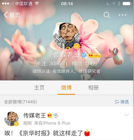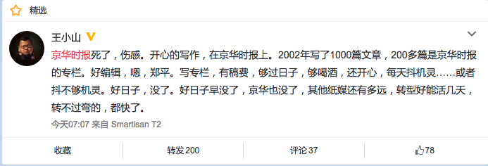 时至此时,并没有官方的正式回复发表。但是消息传开后,很多大V都纷纷发表微博,对这家媒体的转型传闻做出了评论。比如: